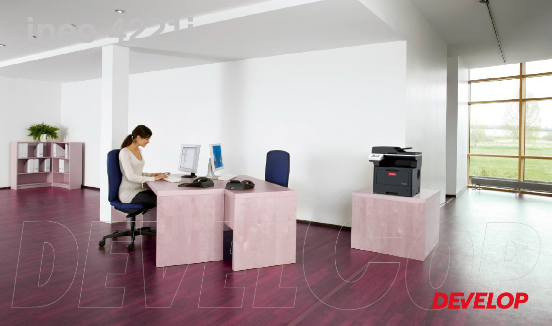 Con funciones de impresión, copia, y escaneo a color, además de una unidad dúplex integrada y alimentador automático de documentos como estándar, la ineo 4221i es el sistema A4 ideal para entornos de oficina en pequeñas y medianas empresas.